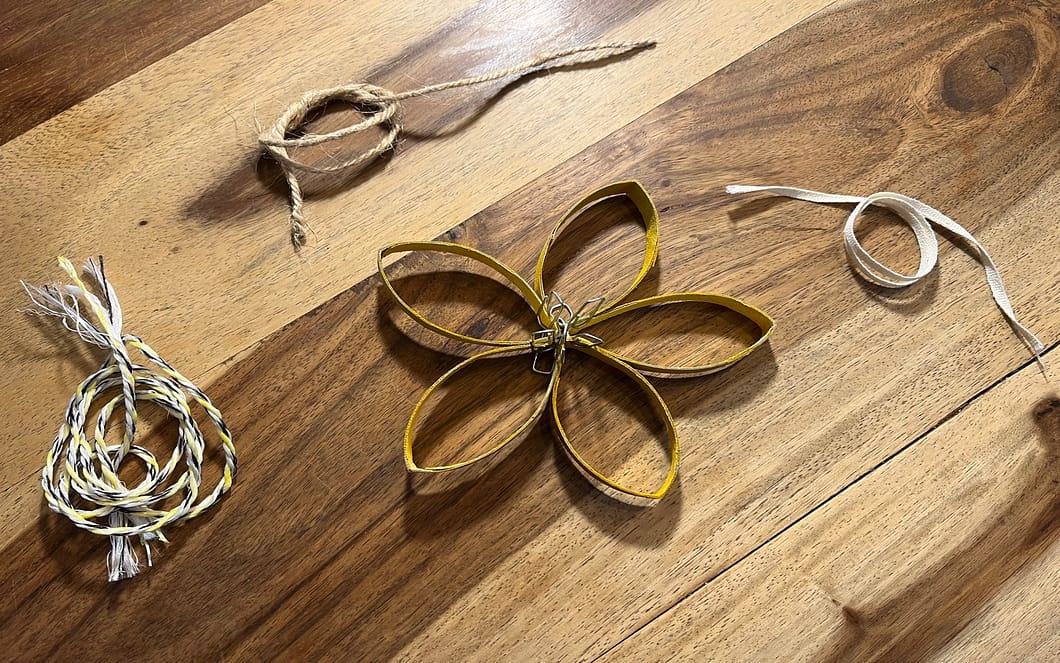 Nimm einen Faden, ein Stück Kordel oder Wolle und es binde an den Stern, damit er aufgehängt werden kann (Bild 5).