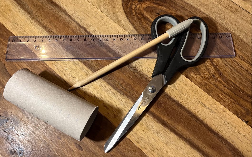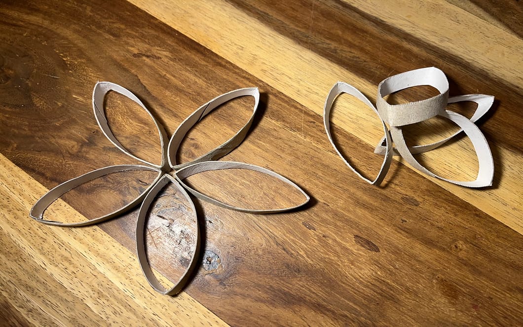 Du brauchst für einen Stern eine Klopapierrolle, und zwar nur die Pappe. Willst du mehrere Sterne machen, solltest du also rechtzeitig sammeln. Du kannst auch die Papprolle einer Küchenrolle nehmen. Daraus entstehen dann 2-3 Sterne.